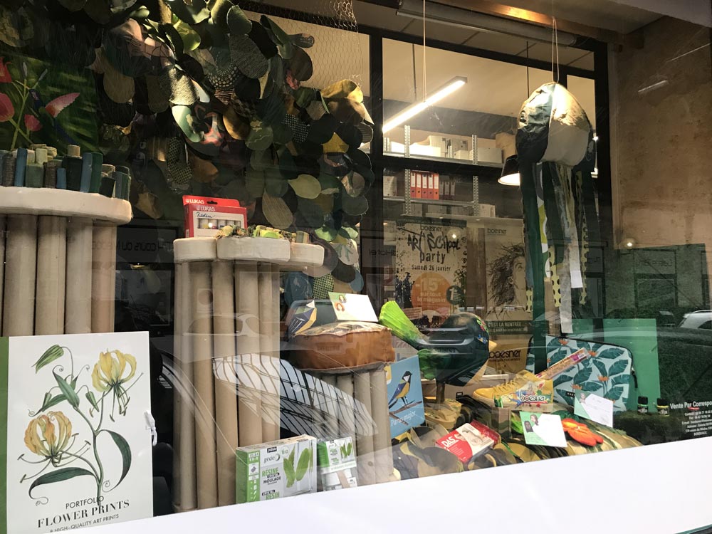 Design and installation of two display windows showcasing eco-design and sustainable creativity.