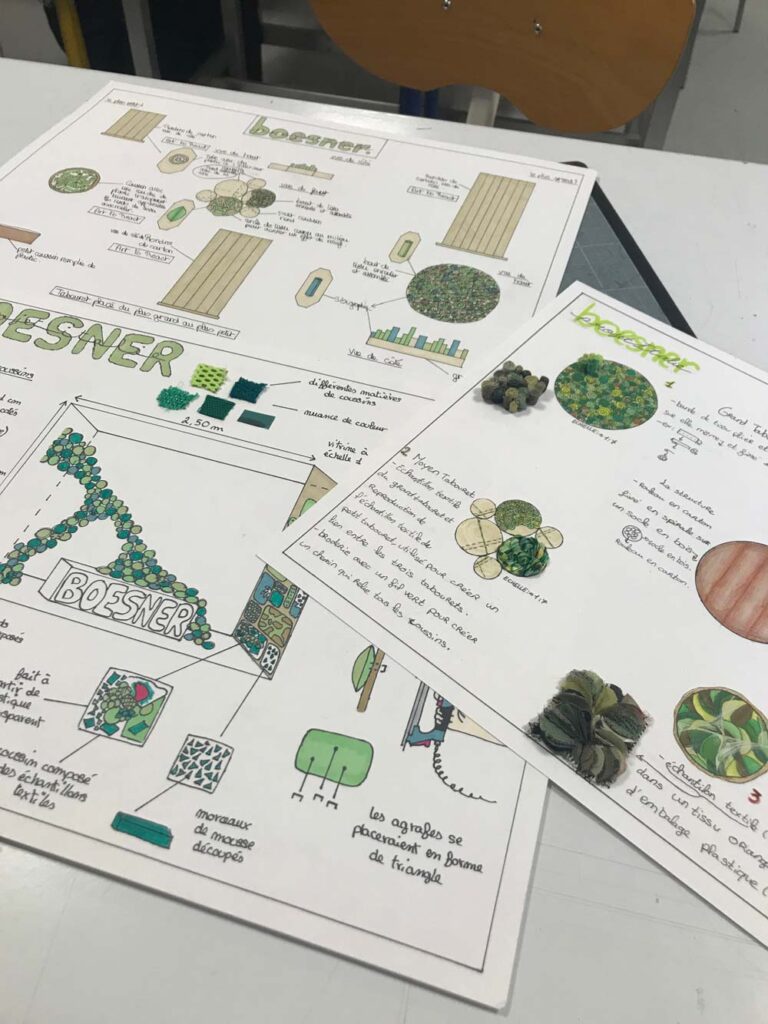 The exhibition organized by this company (Boesner) was inspired by an observation made by the managers of Boesner, a company specializing in art supplies, who noticed the large amount of plastic and cardboard waste generated by their activity. Concerned with finding sustainable solutions, they approached our department to share our expertise in creating eco-friendly furniture.
