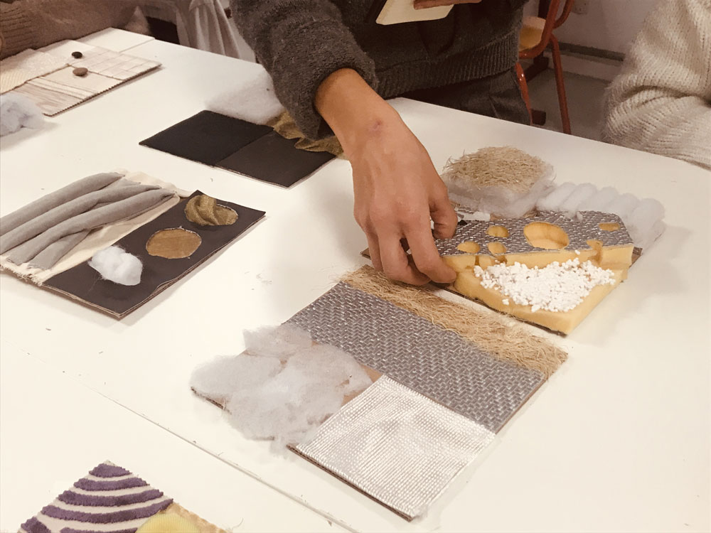 The eco-responsible sensory project is part of an inclusive and sustainable approach, developed in partnership with the Mériadeck Library – Diderot Center in Bordeaux, a service dedicated to people with visual impairments. This collaboration enabled students from the Upholstery Tapestry section to discover a landmark cultural venue, while engaging in discussions around environmentally friendly practices and inclusion.