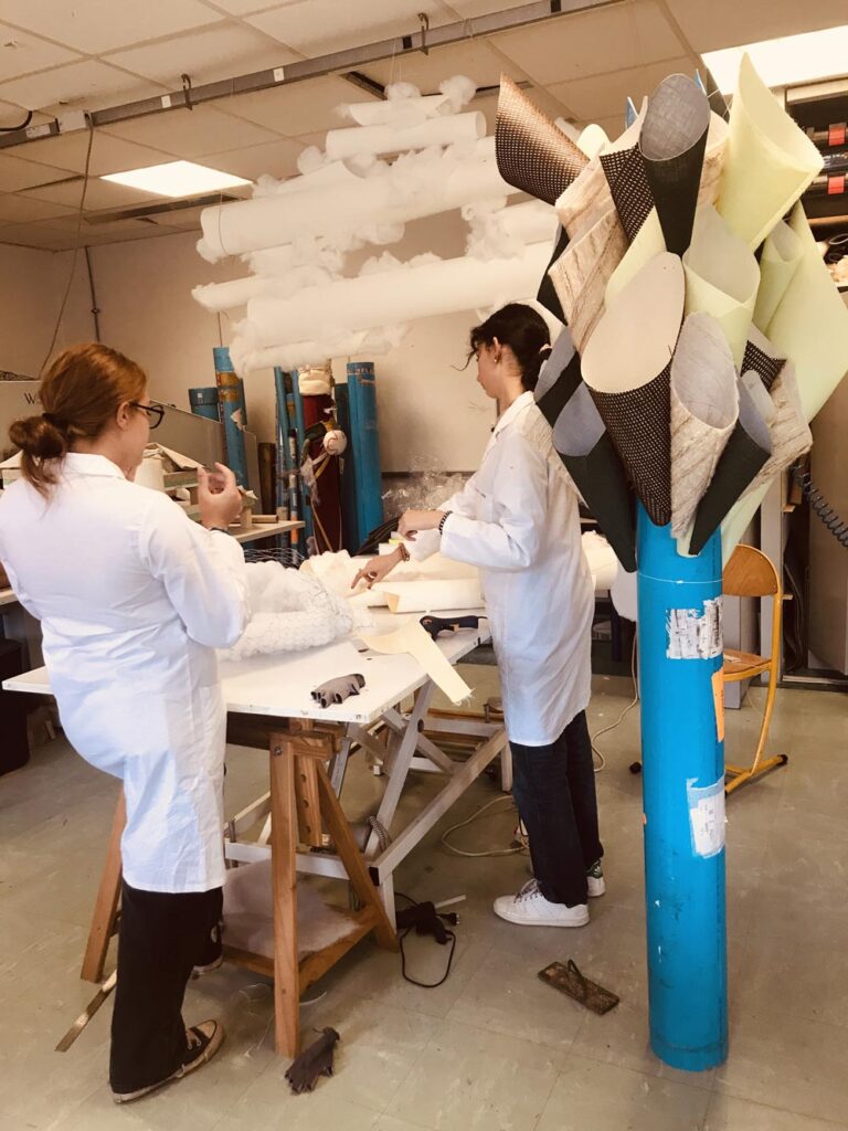 As part of the school’s Open Days, the students from the Upholstery section designed an immersive sensory textile exhibition, conceived as a journey through a forest. The materials used came exclusively from the school’s workshops, promoting reuse and waste reduction.